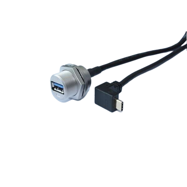 USB-A 3.0 Metal C3 Panel Jack Screw With Type C Plug Right Angle RightLeft